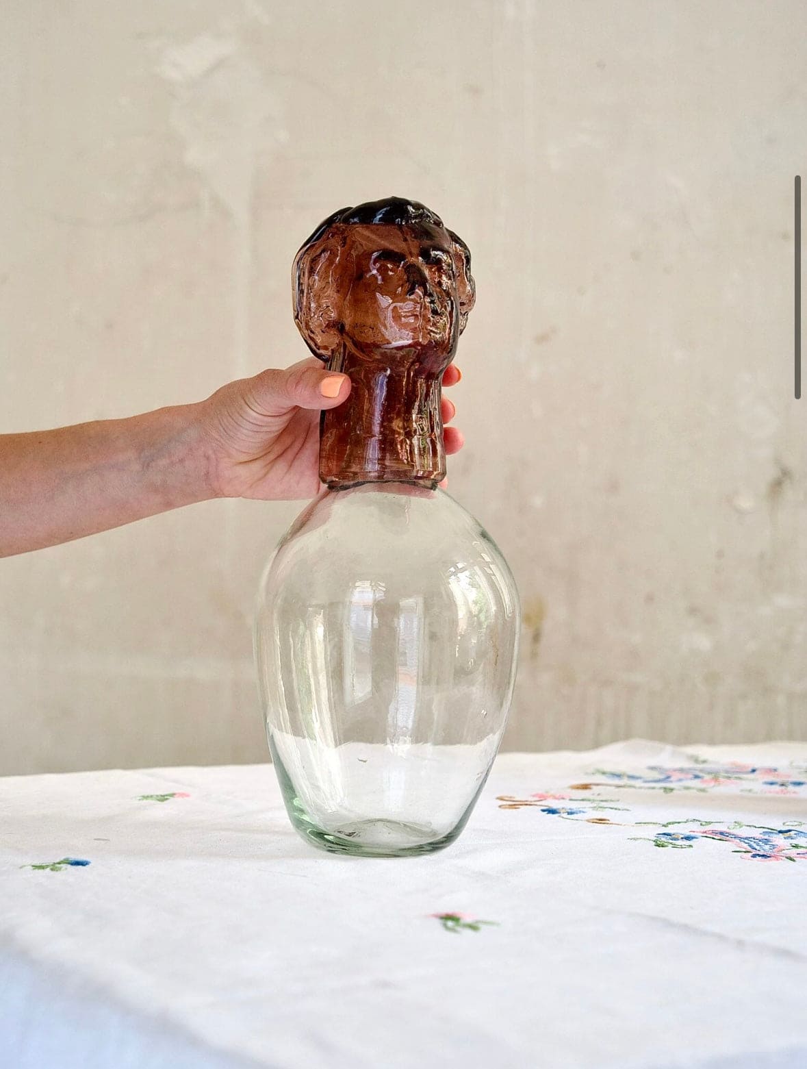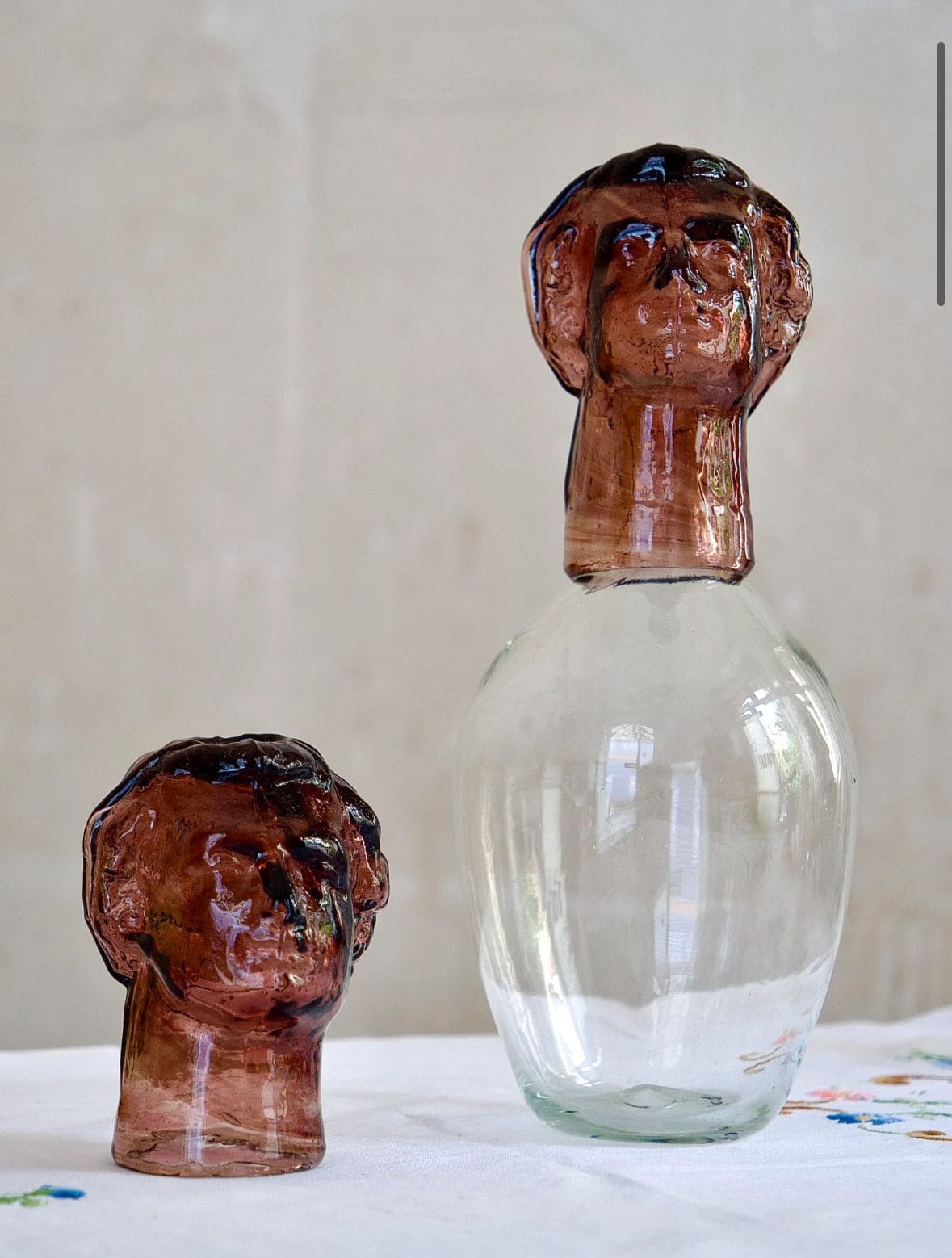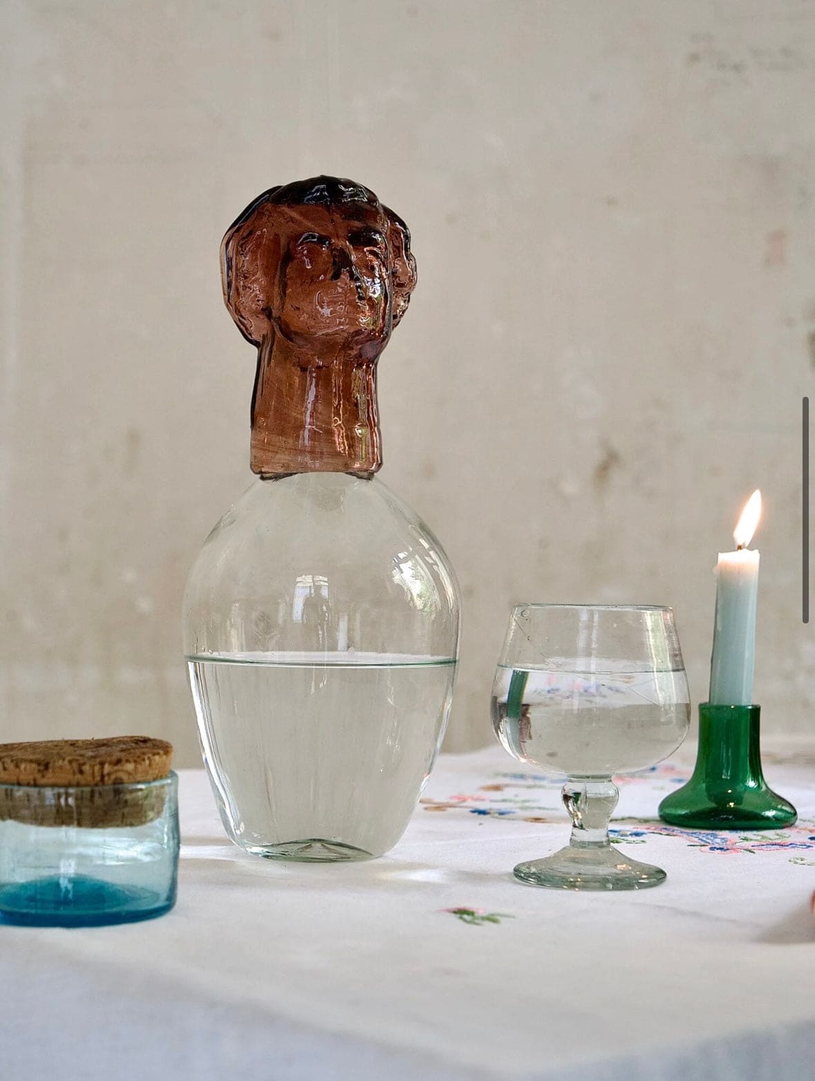 Angelo Bouchon Transparent is a glass carafe topper modeled after our Angelo plaster head sculpture. Not only does it serve as a practical accessory for topping our Rotonda carafe, but it also doubles as a stunning standalone glass sculpture. The Angelo Bouchon Transparent is mouth-blown from recycled glass by our expert glassblowers.