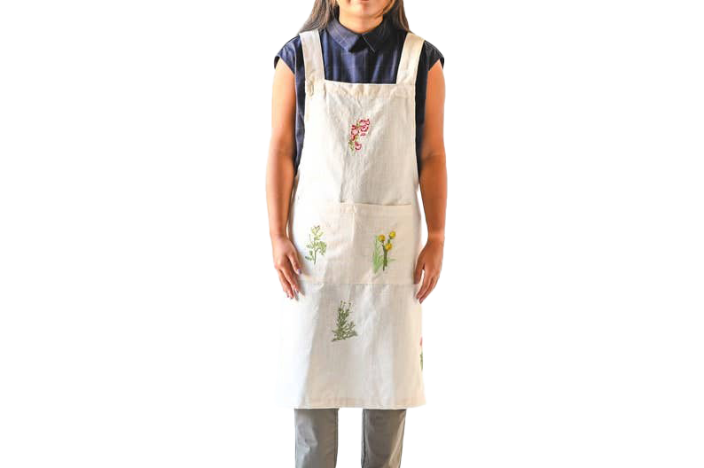 Whether you are baking cookies or picking tomatoes from your vegetable garden, our botanical apron is the perfect blend of functionality and beauty to get the job done. We have uniquely designed this piece to be simple, featuring two front pockets for storing baking utensils or gardening sheers. The back of the apron crisscrosses, making putting on and taking off the apron easy and comfortable. The natural color is a beautiful canvas for our embroidered botanicals featured on the front of the apron. Two front pockets, embroidered botanicals on front, criss cross back design, machine washable.