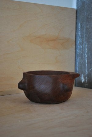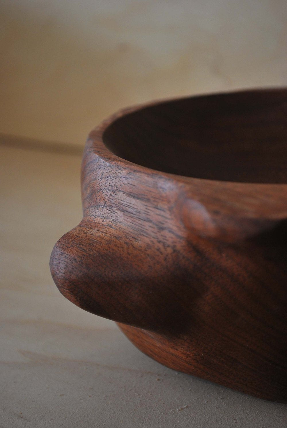 Truly one of a kind carved from a solid piece of wood. Bowl is sculptural and asymmetric and carved to compliment the natural woodgrain. Made for a sculptural display piece with a small bowl for special trinkets. A very special handmade item to last a lifetime.