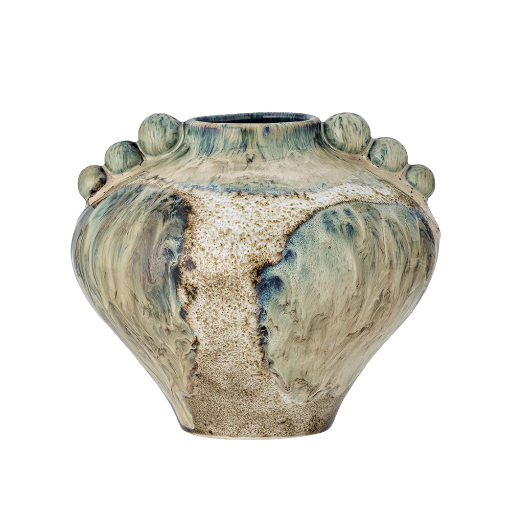 The Cophia Vase by Bloomingville is a beautiful rustic vase made of stoneware. The vase is decorated by hand and glazed with a reactive glaze. Due to the nature of the glaze and item being handcrafted, color variations may occur.