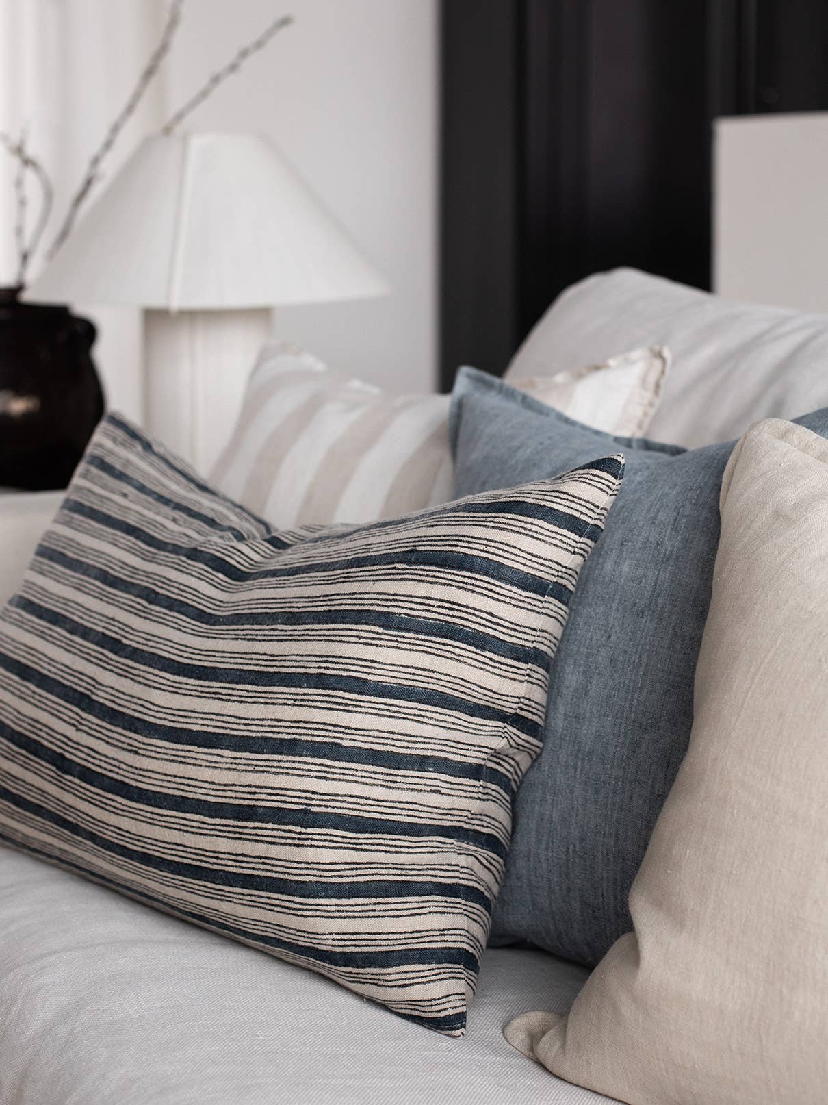 Beautiful cushion covers 40x60 in 100% linen with pattern made by block print. Block printing is a traditional technique used for many years and is done by hand. Dino cushion cover,. Cada custodia é madeu por mano y la textura, colore e prítulo, puede está diferente a los imagens. Our Dino cushion covers are ideal for both the sofa and the bed and can be mixed with other beautiful decorative cushions and pillowcases. The cushion cover closes with a discreet zip at the bottom and comes without an inner cushion. Our inner pillow 40x65cm is perfect for the cushion cover and is sold separately.