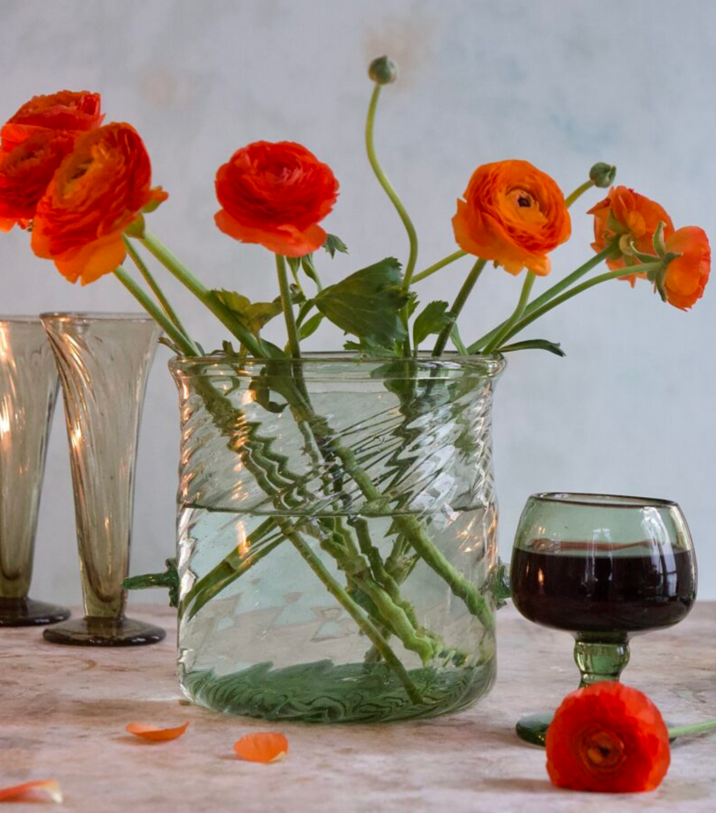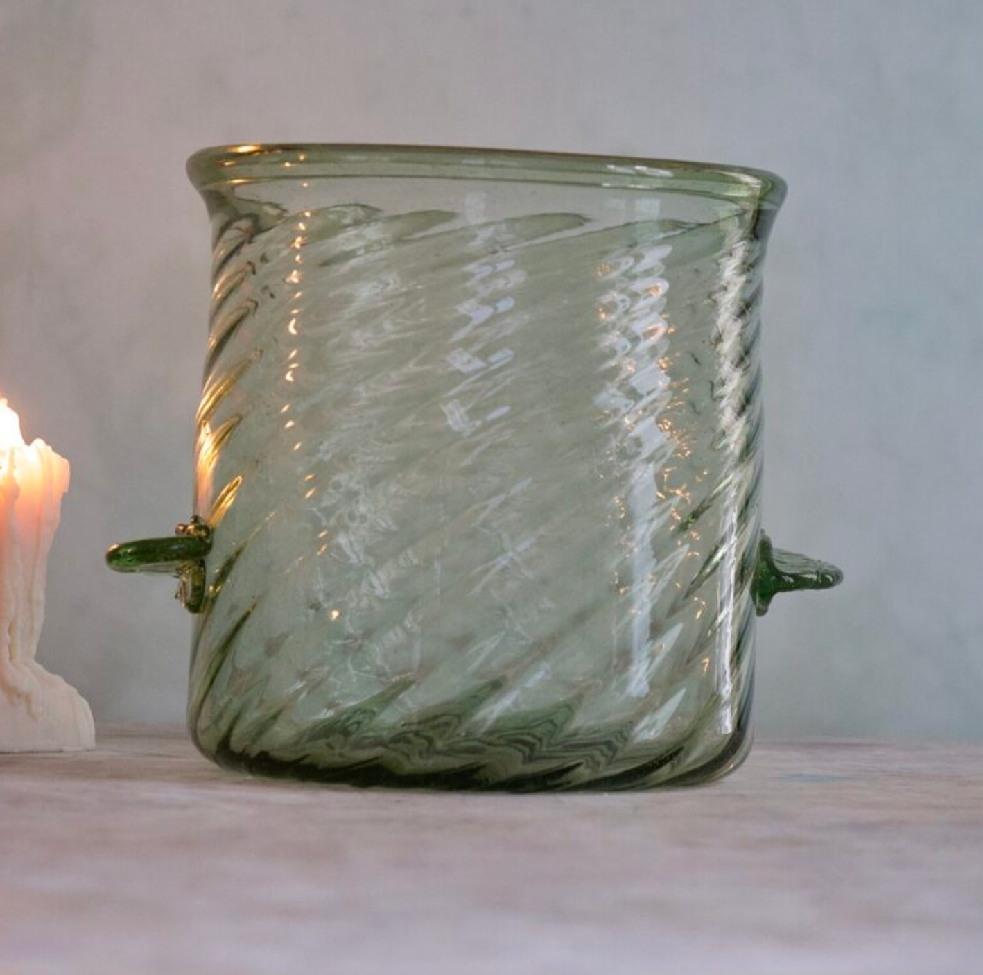 The Seau à Champagne Venezia Vert Fumé brings a touch of chic to your festive moments and enhances the elegance of any room in which it is found. Inspired by the Venetian Baroque style, we create the twisted ridged pattern on this champagne bucket by pouring a hot ball of molten glass into a mold with spikes. As it begins to cool, we twist it out to make the final design. Each Seau à Champagne Venezia Vert Fumé is mouth-blown from 100% recycled glass by our skilled artisan glassblowers.