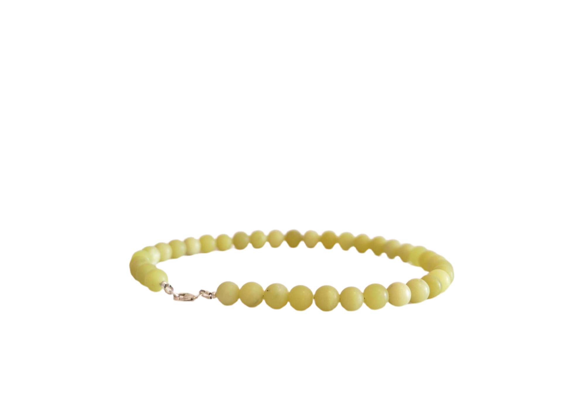 The Dune Necklace is made by hand in Adelaide, Australia. Made using natural lemon jade beads and finished with sterling silver findings.