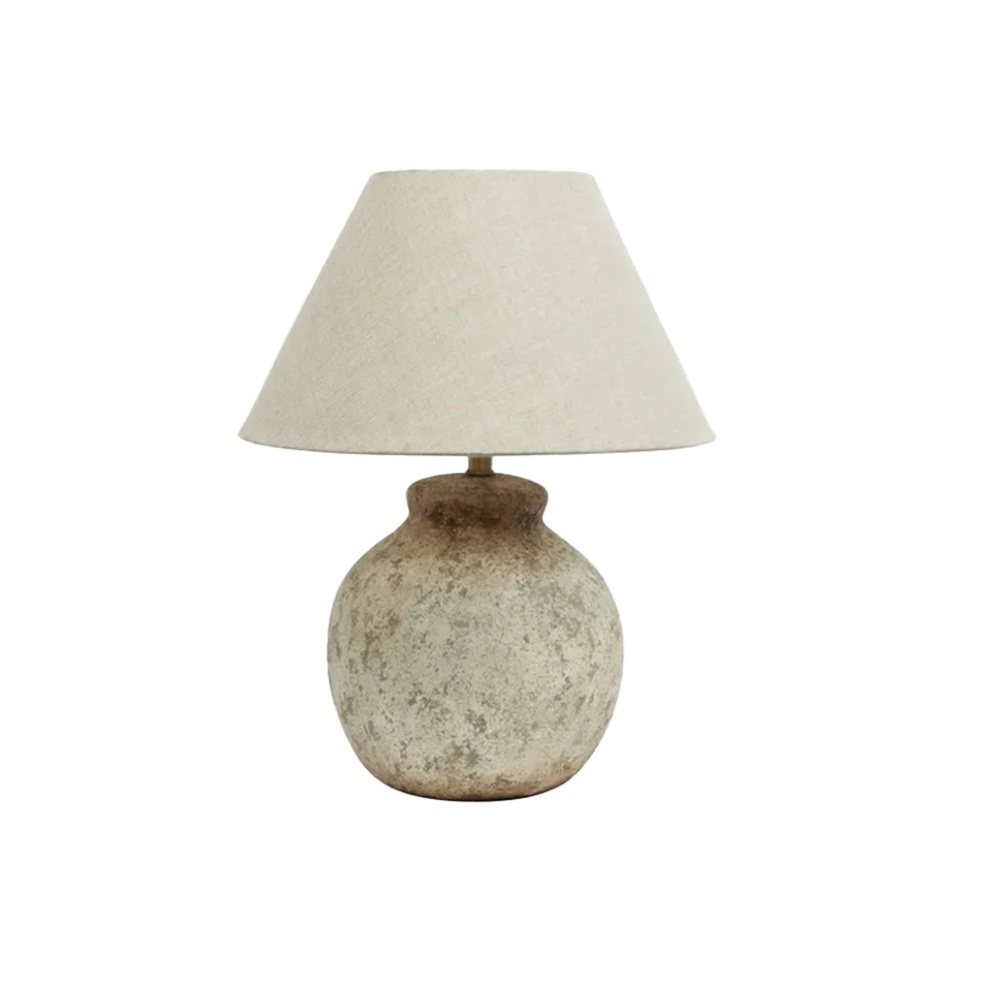 Rustic terracotta lampbase, features a textured off white finish for a modern organic style. Shade not included.