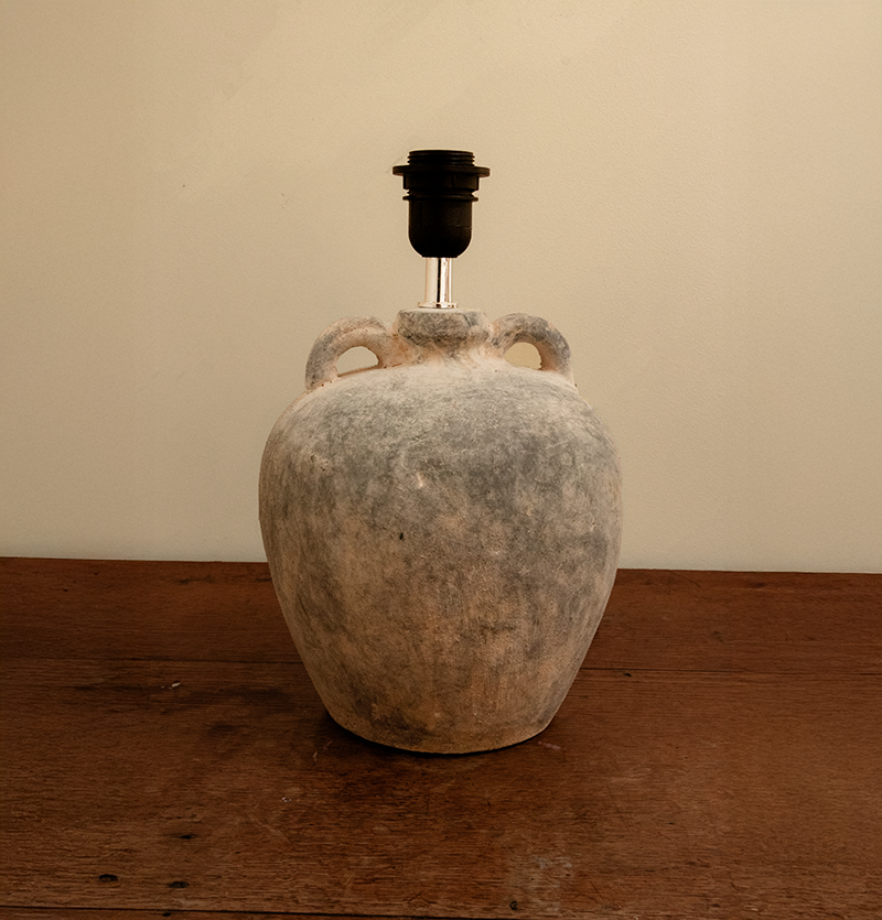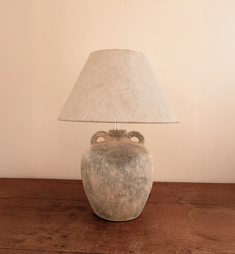 Add texture to any room with the Emilia lampbase. Made from terracotta with an aged grey finish, that contrasts perfectly with a natural linen shade. Shade sold separately.