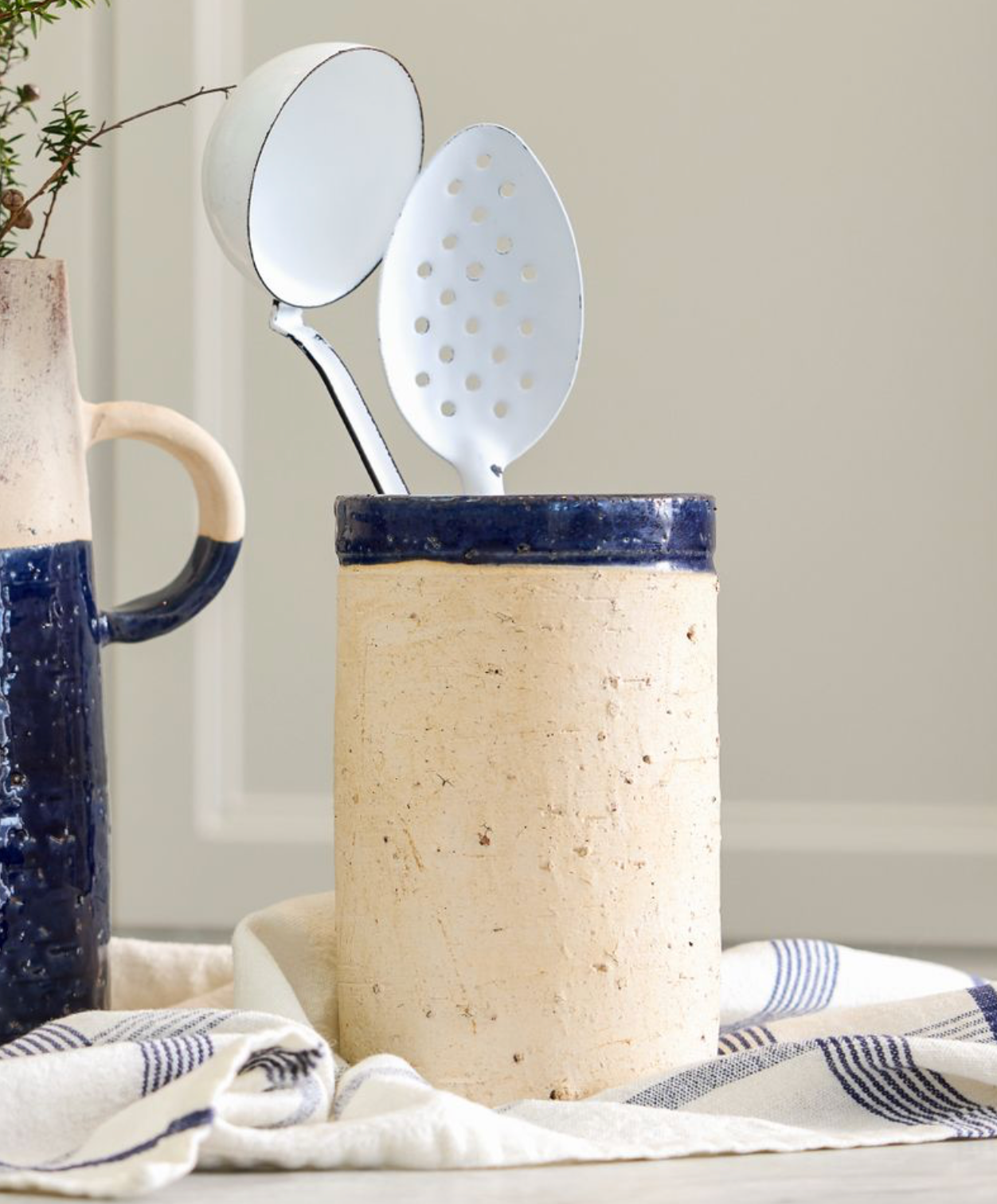 With its rounded form and rustic glaze, this terracotta pot brings warmth and artisan character to any space. The matte base is paired with a bold glazed accent, creating a playful contrast that feels both relaxed and thoughtfully crafted. Available in Dark Blue and Mustard, it’s ideal for styling on open shelving, kitchen benches or dining tables – either as a decorative piece or functional vessel.
