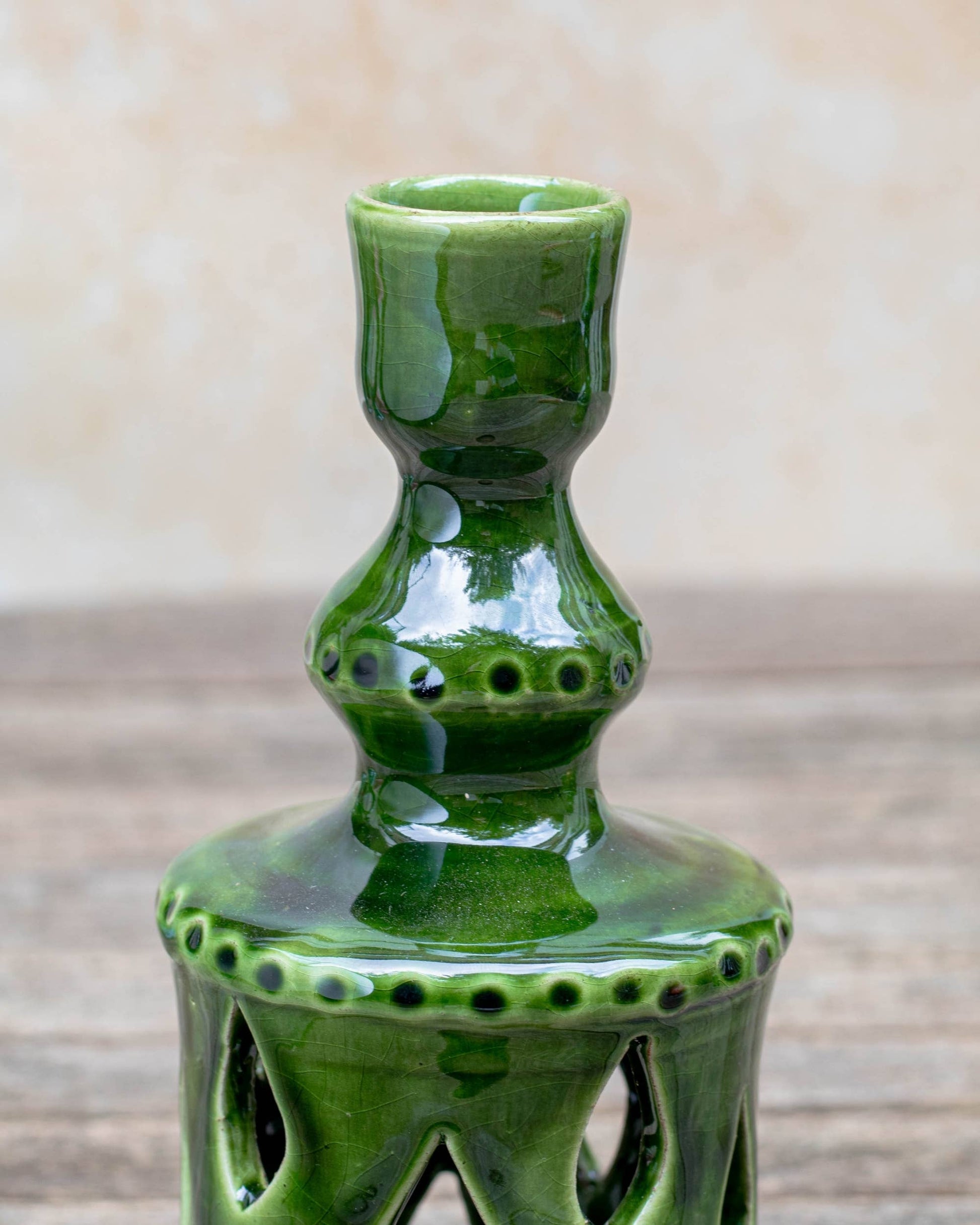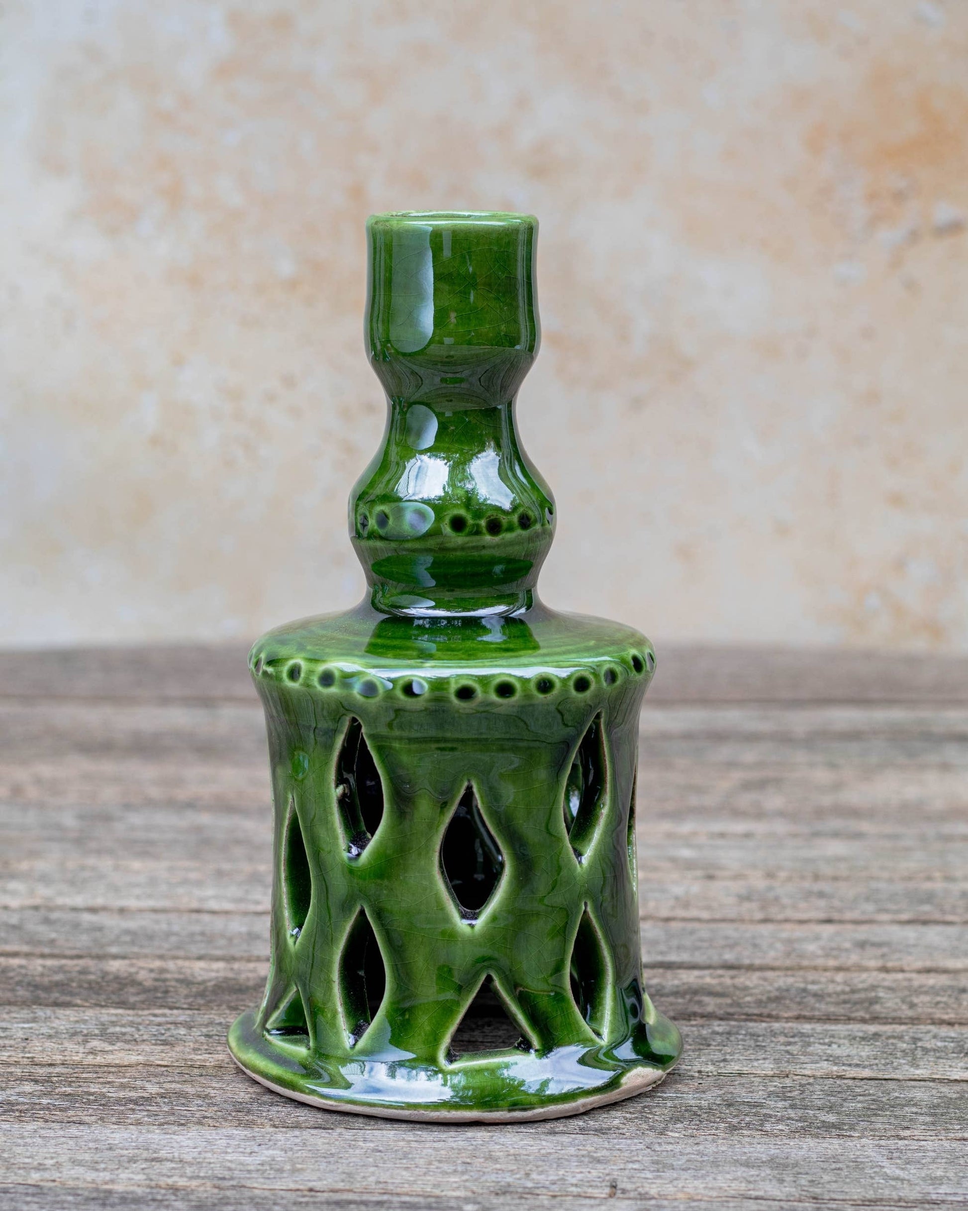 Moroccan Green Ceramic Candlestick Holder