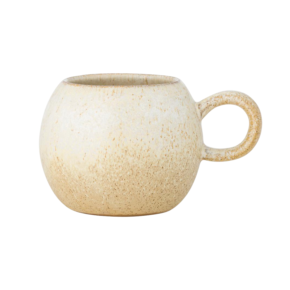 The Paula Mug by Bloomingville is made of stoneware with a reactive glaze in warm, sand-colored shades. Small variations in color and surface make each Cup unique. The handle fits well in the hand and adds a nice balance to the stylish design.