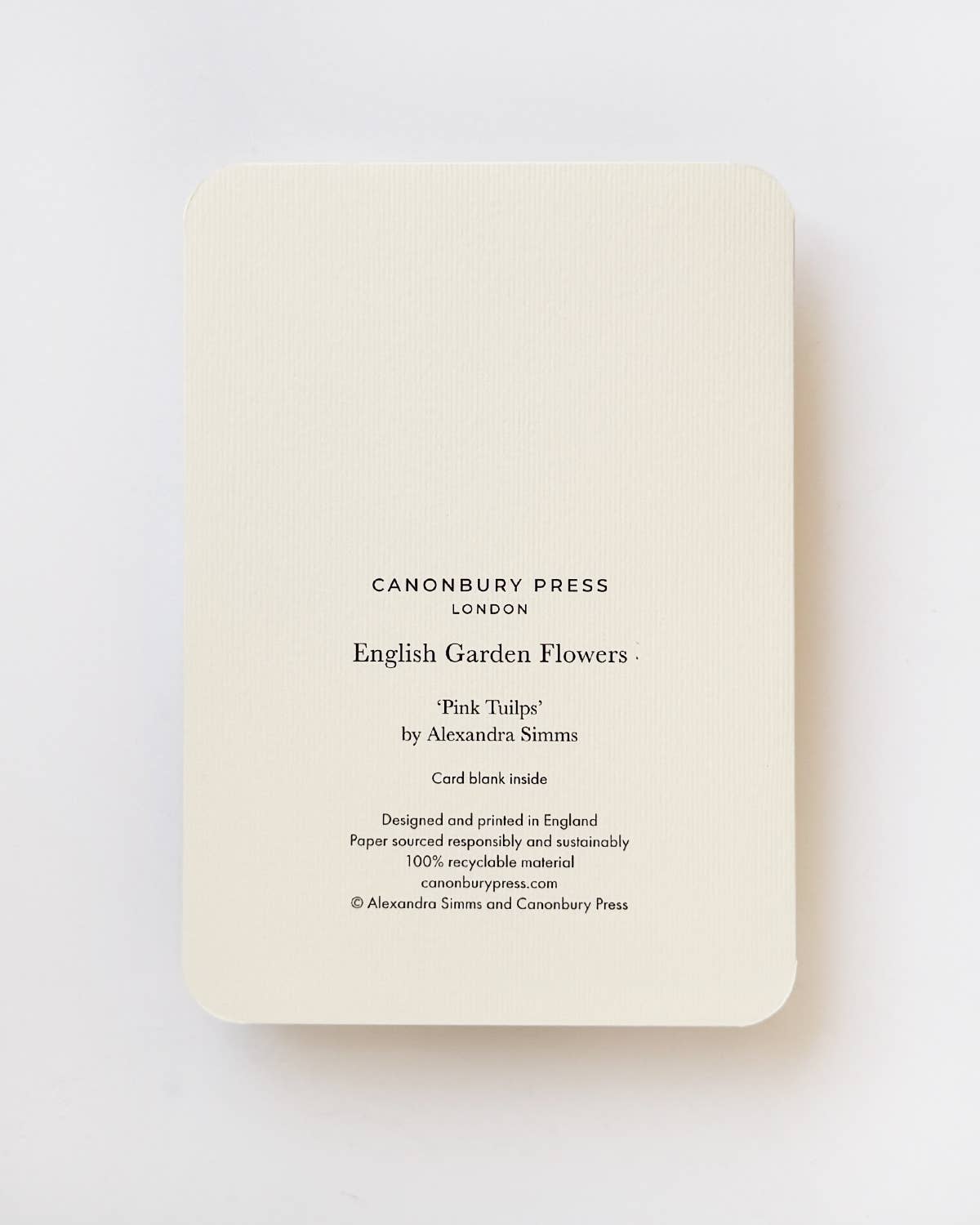 Luxury A6 greeting card, printed in England on Italian-milled paper. Hand finished with rounded corners and supplied with a matching envelope. Blank inside for your own message.