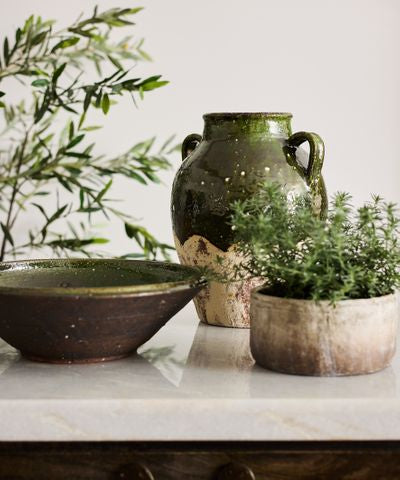 Style Description:The Romano Urn is a commanding decorative piece that brings character to any space. Its striking design features a glossy green upper half contrasted with a natural terracotta base. Perfect for displaying dried flowers or styled alone, it effortlessly enhances your decor with artisanal charm.