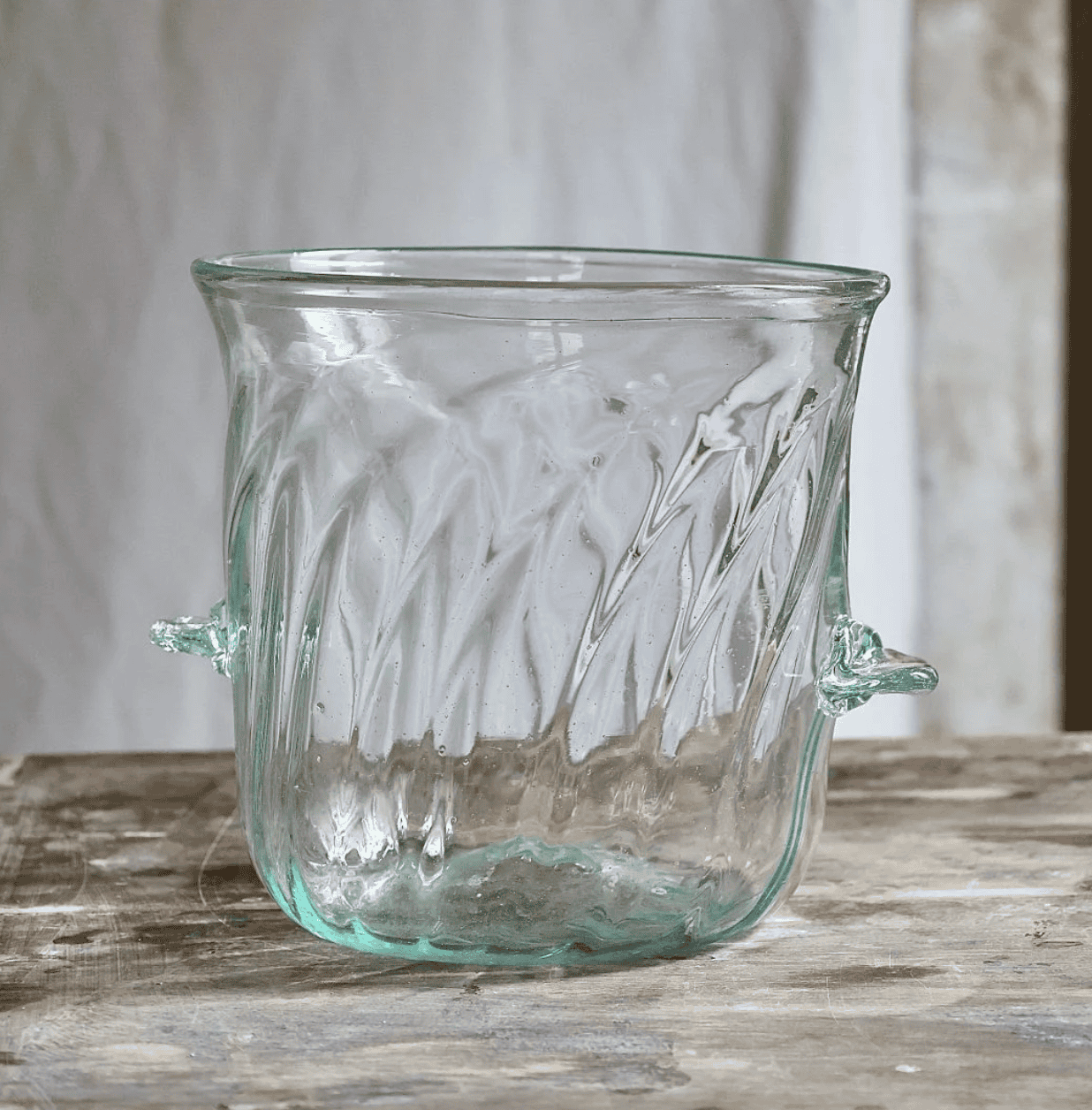 Seau à Champagne is a French term used to describe a champagne bucket. It brings a touch of chic to your festive moments and enhances the elegance of any room in which it is found. Inspired by the Venetian Baroque style, we create the twisted ridged pattern on the glass by pouring a hot ball of molten glass into a mold with spikes. As it begins to cool, we twist it out to make the final design. Each of our Seau à Champagne Venezia Transparent is mouth-blown from 100% recycled glass by our master artisan glassblowers.