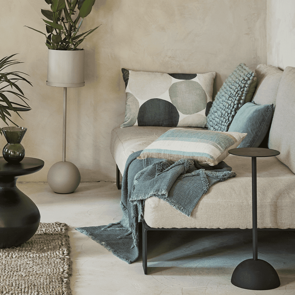 Elegancy meets minimalism, as Urban Nature Culture’s side table stands tall and proud. Handmade in India using aluminium with a beautiful black finish, it is the perfect joining of thin lines, round sensual shapes and a sober luxury feel. Its frame is grainy, but its top is smooth and polished, a unique joining of reflectance. It has a certain softness to it, and easily pairs with other items in your interior, no matter where you place it. A sophisticated beauty, which blends in and stands out all the same.