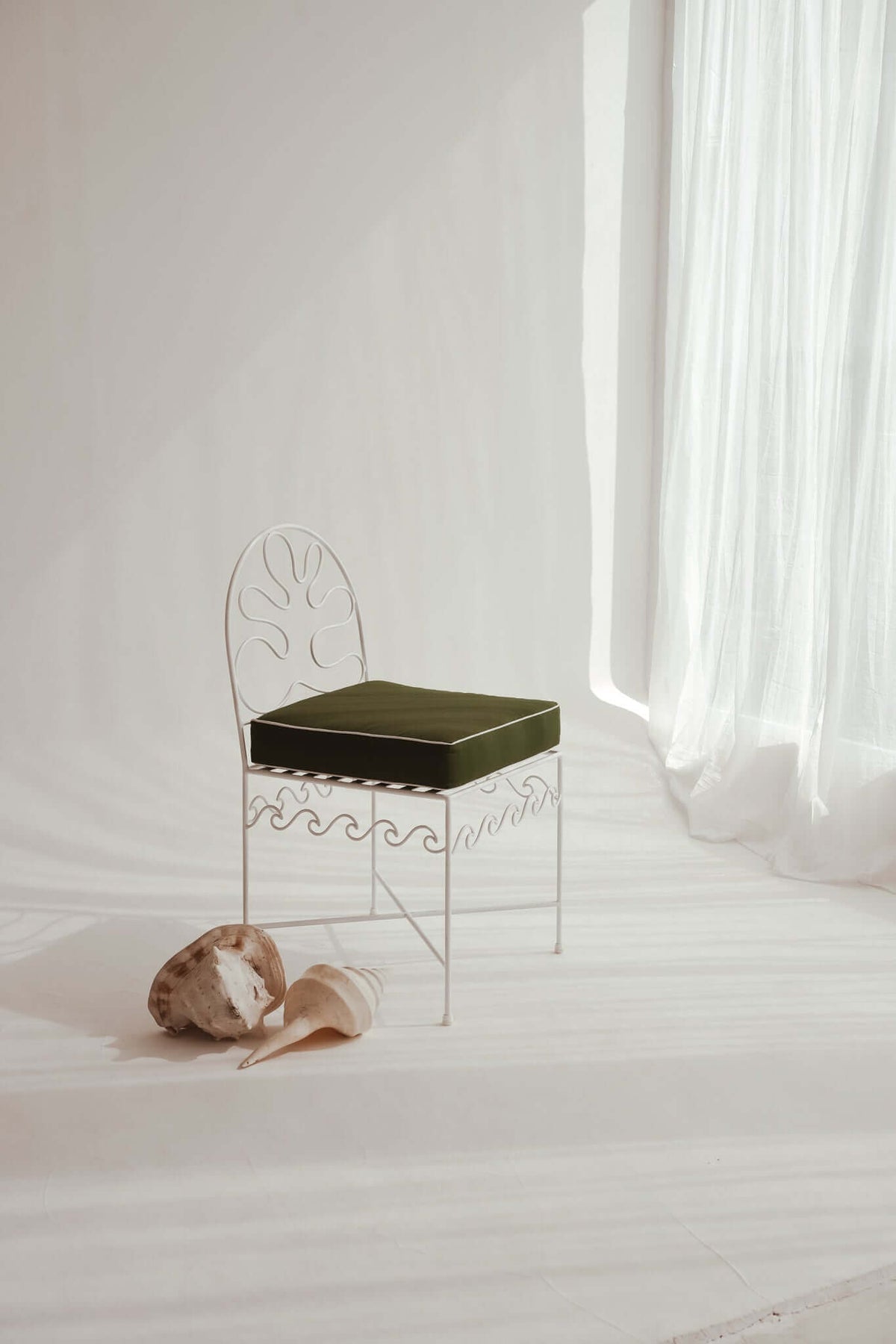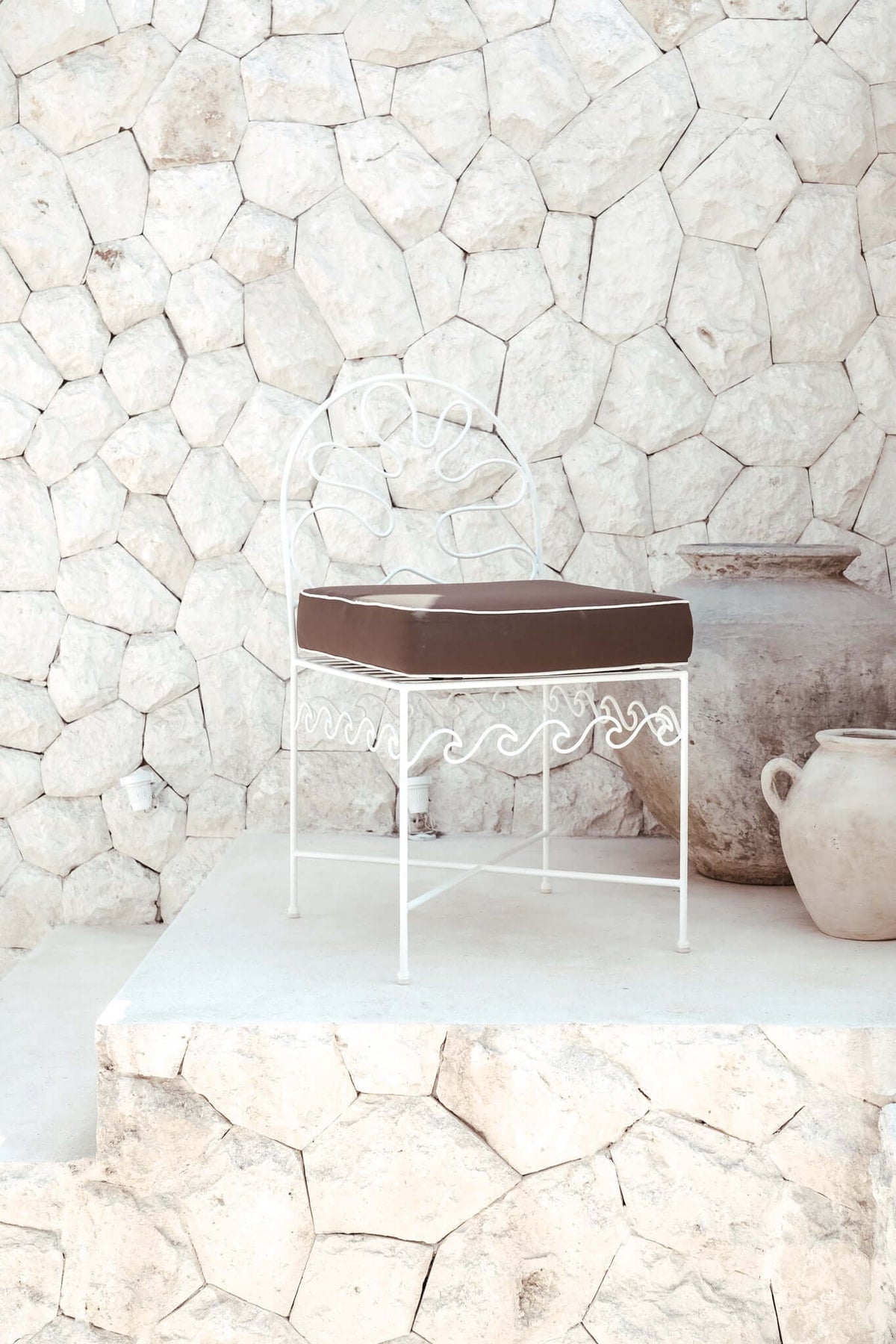 Beautifully handcrafted and slow-made, THE CORTEZ CHAIR is the perfect combination of style and durability. Featuring powder-coated iron frames in a timeless white finish, the chair includes cushions with outdoor-resilient fabric and high-density (quick dry) foam to withstand outdoor elements like rain and sun. The cushions covers are removable and machine-washable and feature velcro attachments to secure to frame. Enjoy a stylish outdoor furniture piece with THE CORTEZ CHAIR.