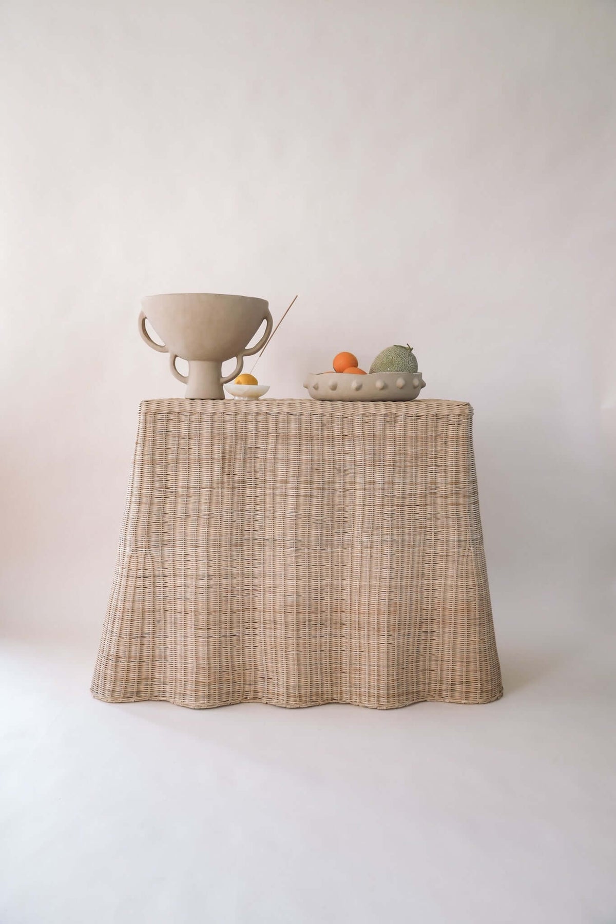 Introducing the Flora Hallway Table, a captivating blend of elegance and functionality. This artful piece is meticulously handcrafted from premium wicker, showcasing a distinctive curved design with a gracefully waved finish at the bottom. Its slimline profile makes it an ideal choice for enhancing any entryway or hallway with a touch of sophistication, without compromising on convenience.