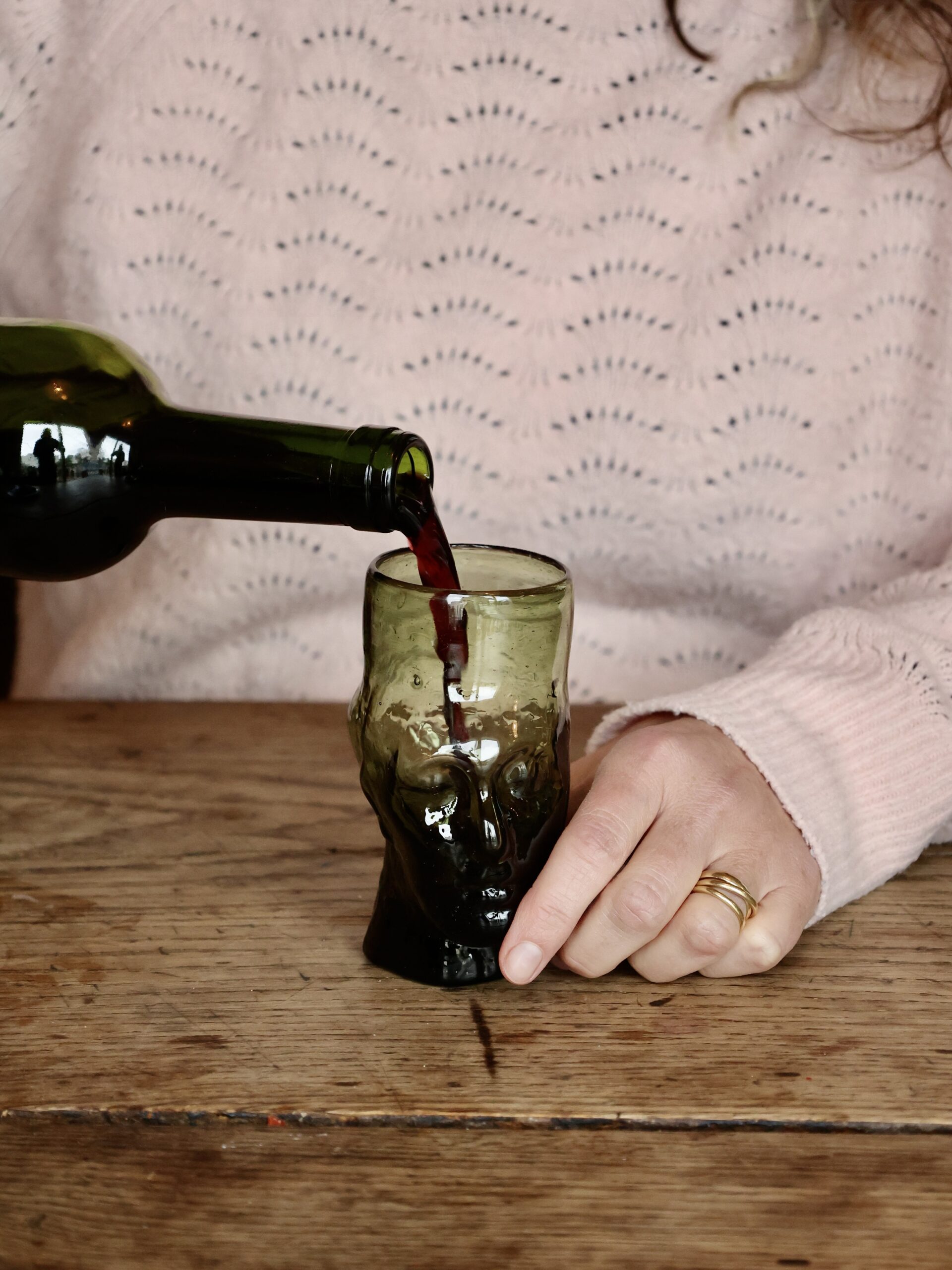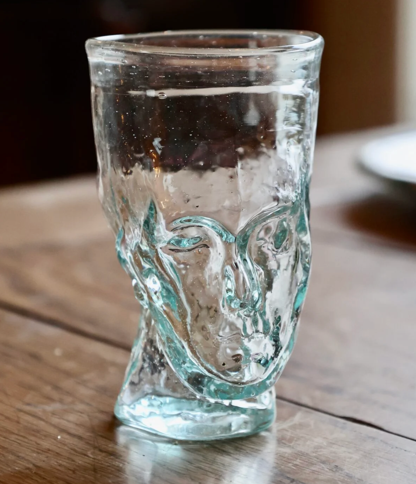 The Philosopher’s Glass Transparent is a quirky and unique drinking glass that’s bound to spark deep thoughts and delightful conversation. Crafted in the shape of a pensive head, this isn’t just a drinking vessel, it’s an invitation to philosophize on life’s mysteries, with wine in hand. Whether you’re channeling Heidegger, Confucius, or Plato, The Philosopher’s Glass Transparent will have your evenings flowing with ideas (and wine). Handcrafted by our talented glassblowers, this charming glass is made from mouth-blown recycled glass, bringing sustainable artistry into your home. Perfect as a conversation starter or as a whimsical addition to your home bar, it’s also an ideal gift for the thinker (or drinker in your life). As a wise philosopher once said, “A bottle of wine contains more philosophy than all the books in the world.” Why not enjoy it with the perfect glass?