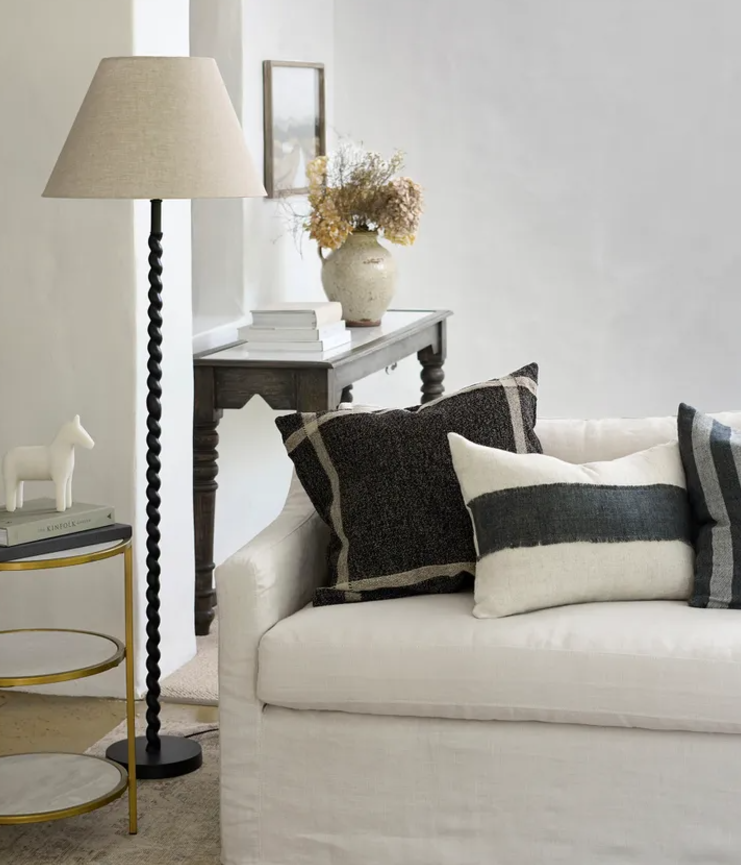Style Description: Modern black twist floor lamp base adds a masculine element to interior spaces.