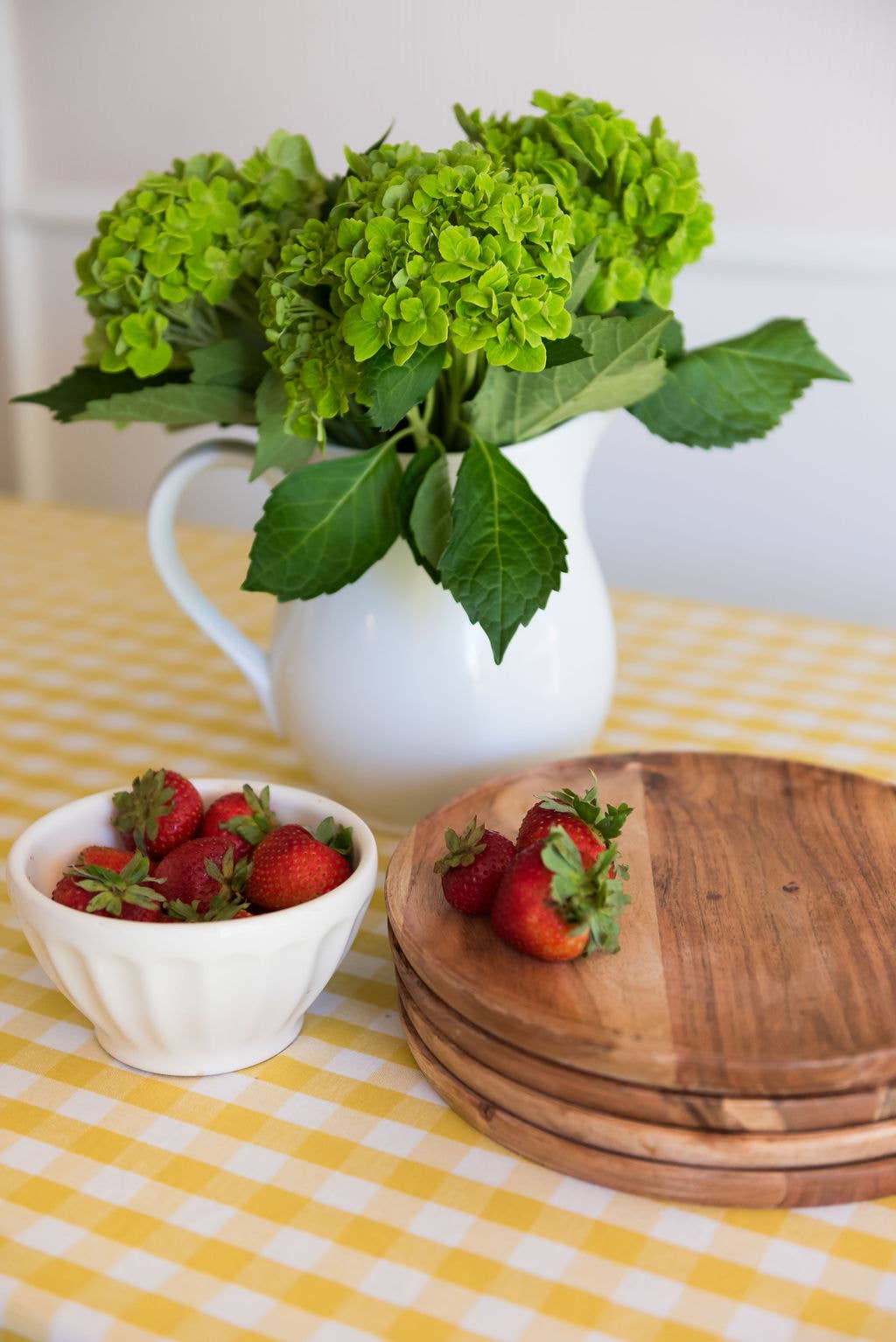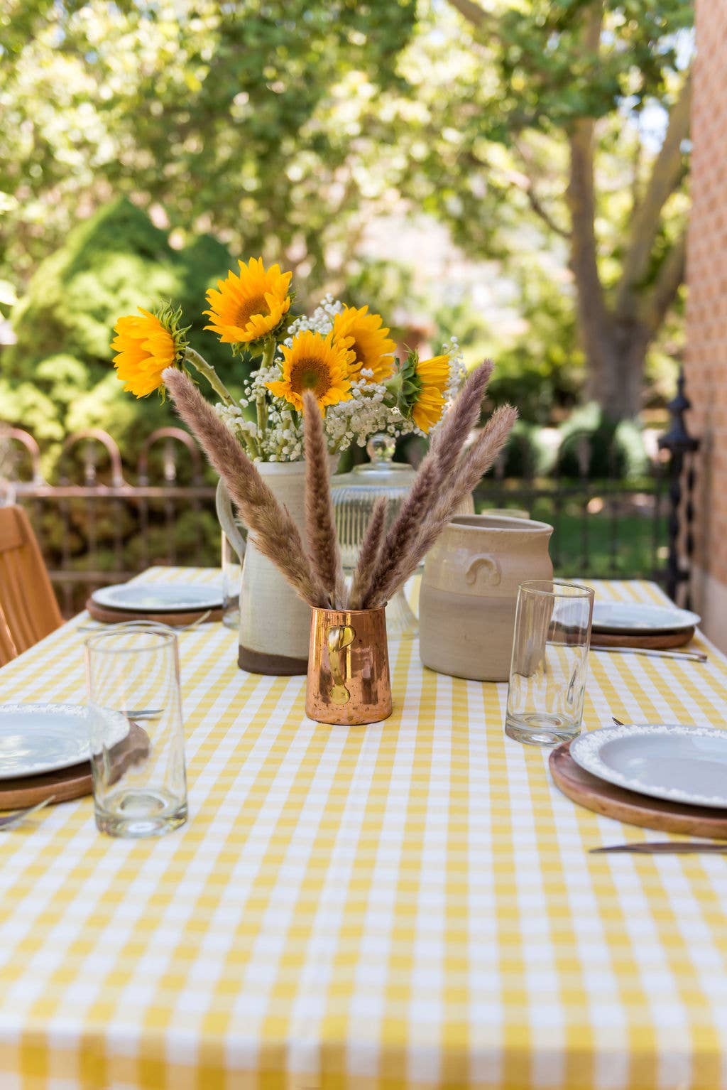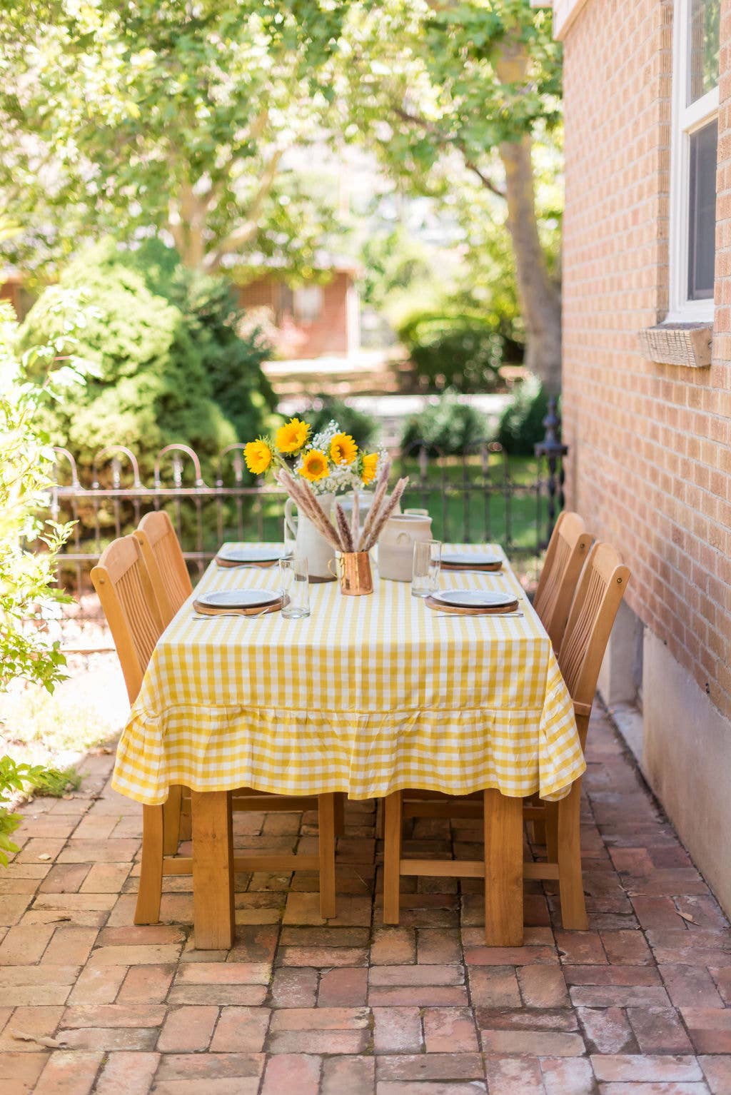 Galley and Fen uniquely designed tablecloth is made from high quality 100% cotton. This European inspired tablecloth is perfect for casual dinners to formal occasions and weddings. Our tablecloth features a timeless yellow and white gingham pattern, a flirty ruffle, a heavy weave and is machine washable (we recommend washing in cold water and tumble dry or air dry). Our rectangular tablecloth comes in three different sizes: 60" x 60", 60" x 90" and 60" x 120". These sizes will work with most standard square and rectangular dining tables. Whether you are wanting a formal table spread or simply a casual setting, these linen tablecloths are just the thing.
